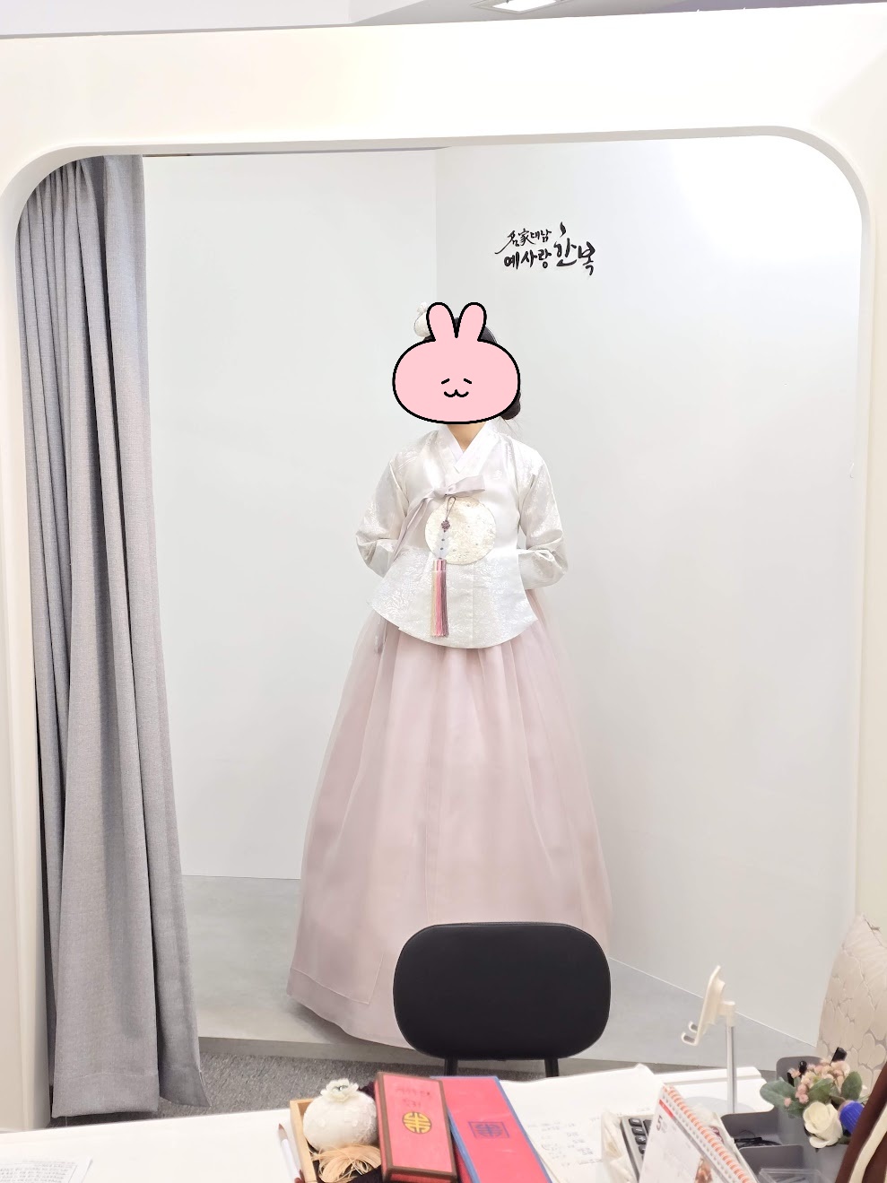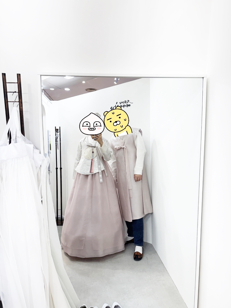 톤 매치는 하얀색 당의에 이 치마가 더 어울렸습니다.